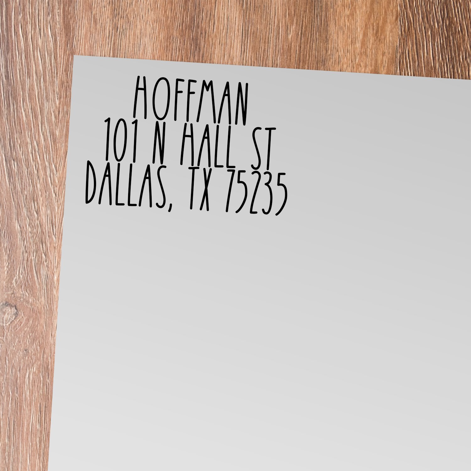 Easily add your return address with this uniquely designed stamp! Great for stamping on envelopes, postcards, and more.