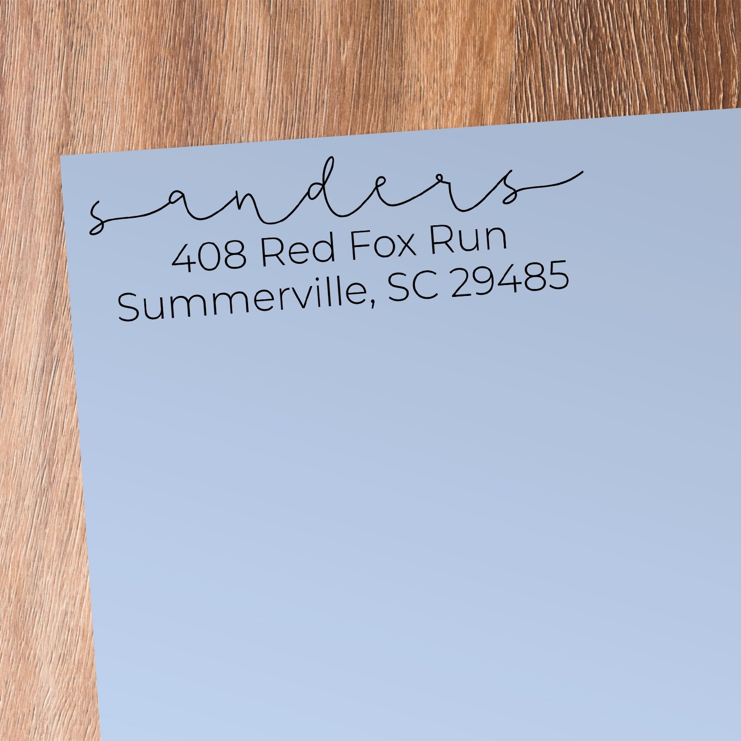 Easily add your return address with this uniquely designed stamp! Great for stamping on envelopes, postcards, and more.