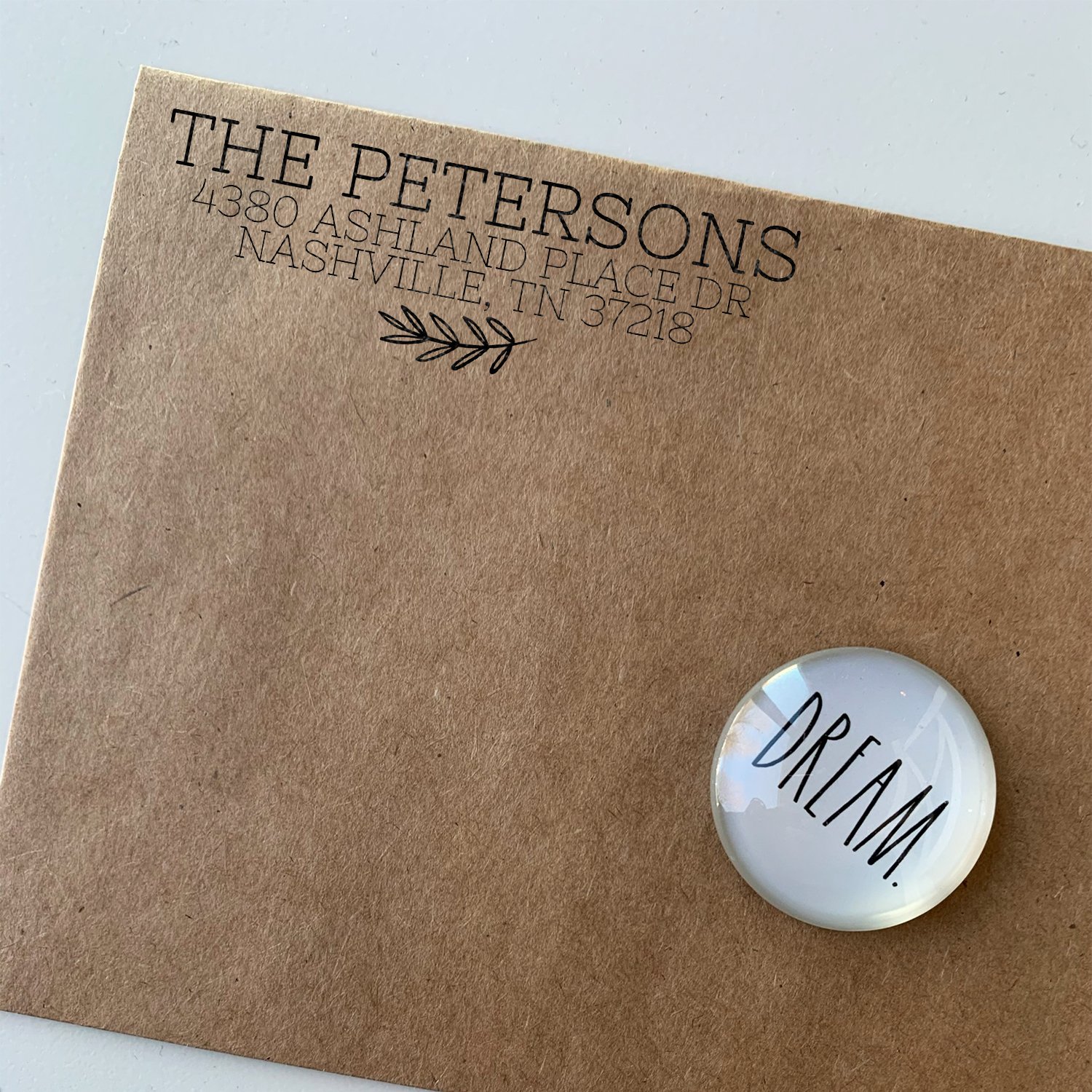 Easily add your return address with this farmhouse inspired stamp! Great for stamping on envelopes, postcards, and more.